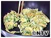 1)油は多めにいれたところで、セロリの葉に火が通るようにゆっくり大きく混ぜながら炒める。
