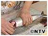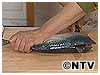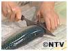 水気をふいて背に包丁を入れる(腹側にも同様に入れる)。