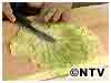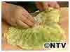 1)キャベツの葉脈はそぎ切り、平らに巻き易くしておきます。また水気もよくきっておきます。