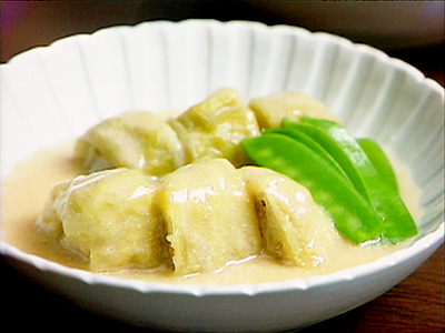 ごまが分離しないように片栗粉でとろみをつけてから練りごまを加え、長く煮すぎないこと。