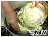 キャベツは芯をくり抜いて、流水をかけながら葉をはがしていきます。
