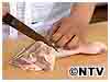 1)鶏肉は裏側の関節の間と骨に沿って切り込みをいれておきます。