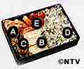 A じゃが芋と豚肉のみそマヨネーズ焼き B 卵焼き C スナックえんどうのおかかあえ ゆでたスナックえんどうに削りがつおをまぶし、しょうゆをふる。 D じゃこねぎごはん 小口切りの万能ねぎとじゃこをごはんに混ぜる。 E プチトマト