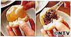 横に割って中の小さい生地をとり出し、ひき肉の甘辛煮を詰めて食べる。