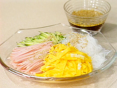 かけ汁(しょうゆ大さじ1+1/2、塩小さじ1/3、砂糖小さじ1、酢大さじ1+1/2、スープ大さじ1~2、炒り白ごま大さじ1+1/2)