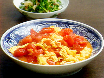 卵が完全に火が通ってからトマトを加えること。(色が悪くなってしまいます)トマトを加えたら混ぜずに鍋ごとゆすりながら炒めます。