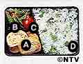 A 信田巻きの梅酒煮/1cm厚さに切る。 B いんげんのおかかあえ ゆでて冷ましたさやいんげんを斜め切りにし、削りがつお、しょうゆ各少々をまぶす。 C プチトマト D 青じそごはん 温かいごはんにちぎった青じそ、塩少々を混ぜる。