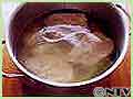 豚肉はゆで汁につけたまま自然に冷まし、冷めたら肉とゆで汁に分ける。肉は3回分ぐらいの回鍋肉に使えるので、残ったものは冷蔵庫で保存し、3~4日位で使い切る。ゆで汁はスープに使う。