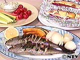 尾やヒレの部分は焦げやすいのでバジルなどを巻いてカバーしておく。