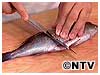 いさきの中骨に達するまで深く斜めに切り込みを入れます。