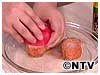 トマトの汁がジュワーとでてくる位パンにこすりつけます。このトーストに生ハムをのせると、スペイン風に。