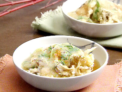 揚げたぶりと舞茸が冷めてしまった場合は、(6)の煮汁でさっと煮て温め、大根おろしと三つ葉を加えて器に盛ります。