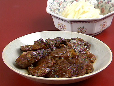 約1時間30分ゆでたもの。 筋が多く、固い肉質がゼラチン質に変わってやわらかくなる。
