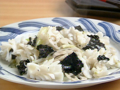のりの半量をスープをあわせておくとまんべんなくのりがからみます。