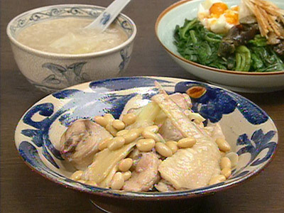 鶏骨つき肉と大豆の煮もの ねぎがゆ