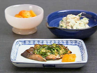 残ったつけ汁も使います。ぶりにのせる直前に調味料とわけぎを合わせます。