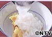 一口大にちぎった焼き芋に炊きたての熱々のおかゆをかける。