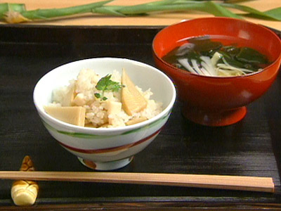 たけのこは穂先を斜めに切り落とし、皮に縦に1本切込みを入れます。鍋に入れ、かぶるくらいの水、米ぬかひとつかみ、赤唐辛子1~2本加え、中火で30~40分ゆでます。根元に竹串がスーッと通るくらいやわらかくなったら火を止めます。ゆで汁につけたまま冷まし、皮をむいて洗い、水につけておきます。