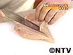 逆側もに開くように斜めに包丁を入れて厚みを均一にする。