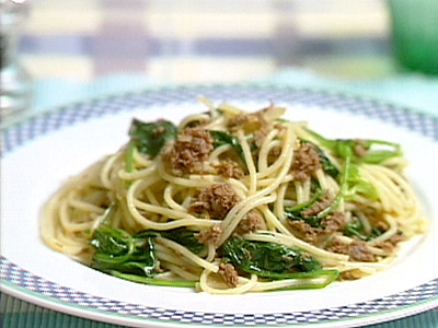 パスタとからめる前に乾いてしまったら、ゆで汁を加えて調節します。