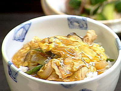具を丼に盛ってから煮汁にとろみをつけて溶き卵を加えてとじる。(ふたをして5秒待つ)