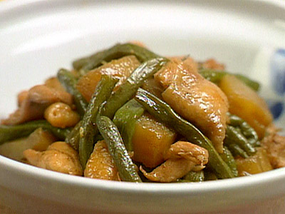 鶏肉、こんにゃく、いんげんの炒り煮