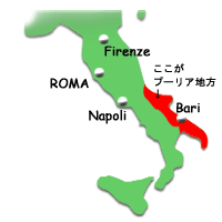 このパスタ、プーリア地方でよく食べられるそうです。プーリアはイタリア地図では長靴のかかとのあたり。
