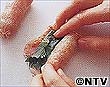 青じそがはみ出すと揚げるときに油がはねるので、中に折り込む。