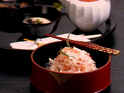 大根は桂むきにしてからせん切りにして歯ごたえを残します。
