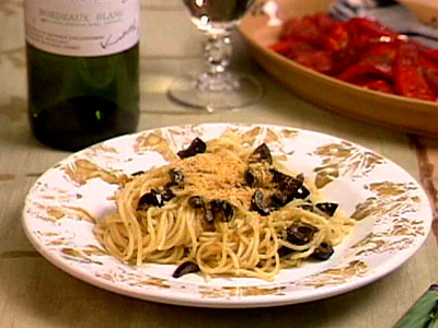 スパゲティのパン粉ソース 赤ピーマンのローストマリネ