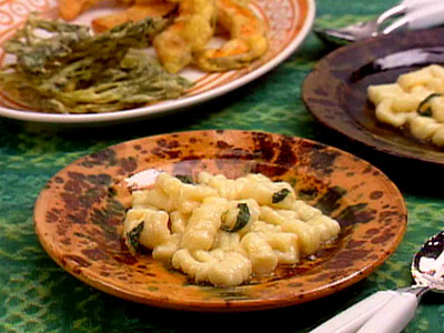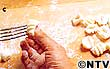 フォークで形作る場合は、フォークに生地をのせ、親指で軽く押さえるようにして、フォークの先端に向けてくるりと飛ばす。