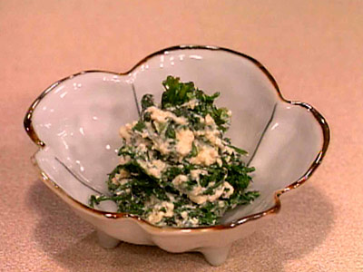 もう一品の白あえのあえ衣はごまに油がでるまですって豆腐を加えます。