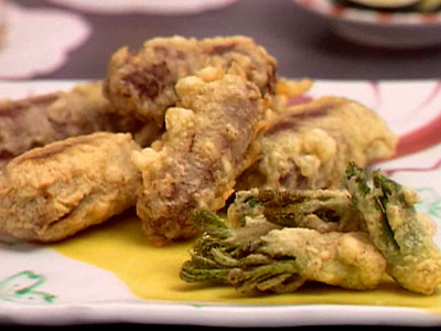 余った衣でたらの芽を揚げて添えます。 (他のものでも、おうちにあるものでどうぞ)