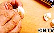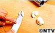 生地の凸の側に親指を当てて裏返すように上に押し上げて指からはずす。