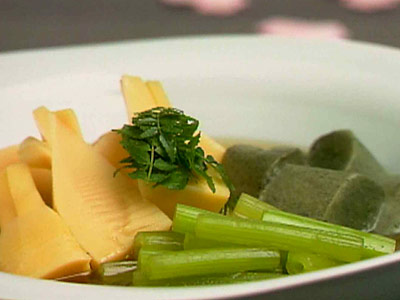 たけのこは下ゆでしたものをもう一度ゆでこぼして、ぬか臭さをとること。 (清湯)市販の真空パックのゆでたけのこを使う場合も忘れずに。