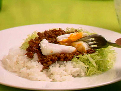 ポーチドエッグとよく混ぜながらいただきましょう。