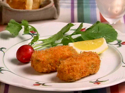 パン粉をつけたらすぐに揚げないこと。室温にすこしおいてなじませておきます。中まで火が通るまで5~6分かけて揚げます。