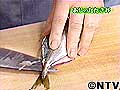 頭と内臓を除いてから、尾が左、背側を手前になるように置き、背ビレの上に包丁を入れ、刃先を中骨の上に当てて尾までひく。
