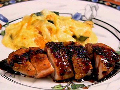 まず、皮の面をこんがり焼き色がつくまで焼き、返して皮に油をかけながらじっくり焼いて中まで火を通す。焼き時間は11分ぐらいかかります。