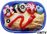 A オムライス 薄焼き卵を作り、小えびの五目炒めを混ぜたごはんをのせて包み、トマトケチャップを添える。 B きゅうりとチーズの串刺し 輪切りのきゅうりとさいの目切りのチーズを串に刺す。 C ラディッシュ 花切りにして水にさらし、水気をきる。