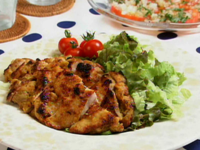 中まで火を通すのに時間がかかるので、まず厚い部分は切り開いて均一の厚さに整え、皮目にはフォークを数箇所刺します。