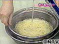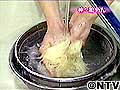 手でさわれるまでさめたら、よくもみ洗いをする。(水が濁らなくなるまでよく洗う)