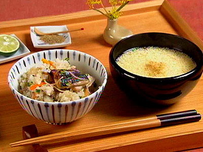 炊くときは米の上に火の通っていないにんじん、しょうが、みょうがをのせて、塩焼きの残りで作ってもよいでしょう。