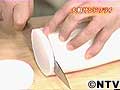 大根はつながった状態のほうが切れ目を入れやすいので、5ミリ厚さに切り目を入れ、また5ミリ厚さのところを切り落とすとよい。