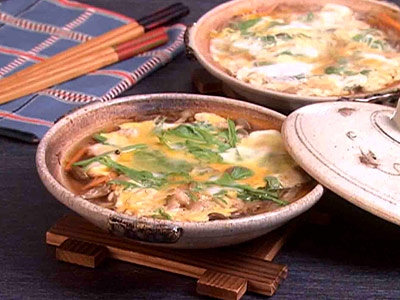 この卵とじ、材料の組み合わせは自由、豚やかまぼこなどご家庭にあるものを色々ためしてみるのも楽しいでしょう!