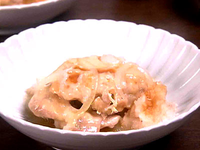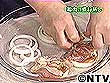 耐熱皿の中央をあけて、4ヶ所(人数分)に玉ねぎをしいて鶏肉をのせる。