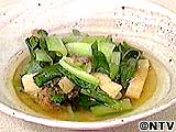 ■ 材料 ・小松菜(200g) ・油揚げ(1枚)だし昆布 ・(10cmを2カップの水につけておく) ・かつお節(1カップ) ・みりん(大さじ1) ・塩(小さじ1/2) ・しょうゆ(大さじ1) ■ 作り方 (1)小松菜は3~4cm長さに切り、油揚げは縦3等分にして細切りにします。 (2)小鍋に昆布だしを煮立て、昆布を取り除き、みりん、塩、しょうゆを加え、小松菜の茎、油揚げも加えふたをしてさっと煮、小松菜の葉も加えて、仕上げに手でもんだかつお節を加えて火を止めて器に盛ります。