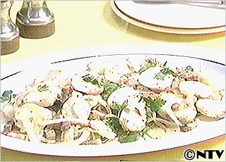 里芋はラップに包んでレンジ蒸しにし、大きいものは半月の薄切りにします。