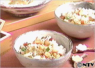 炊き上がったところに具を加えて混ぜ、全体に味をなじませます。