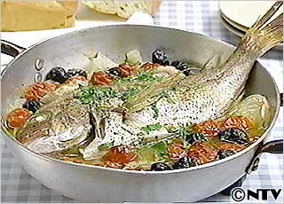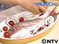 魚の腹ににんにくやハーブを詰めて焼くと、より香りよく焼き上がる。また、魚の上に野菜をのせると野菜の水分で焼き上がりがベタッとしてしまうので注意する。